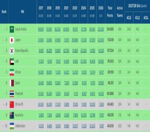 隨著墨爾本城被武里南聯淘汰,無緣亞冠精英聯賽八強,澳超的技術積分仍差中超0.3分,且全軍覆沒。2027-28賽季,中超將繼續保留三個亞冠席位,分別是一個亞冠精英聯賽正賽,一個亞冠精英聯賽附加賽,一個亞冠二級聯賽正賽。