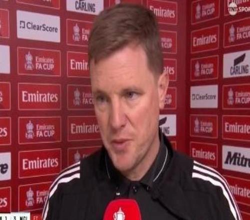 足總杯1/8決賽,紐卡主場1-3輸給曼城,紐卡主帥埃迪-豪賽后接受了TNT體育的采訪。埃迪,從足總杯出局顯然讓人很失...